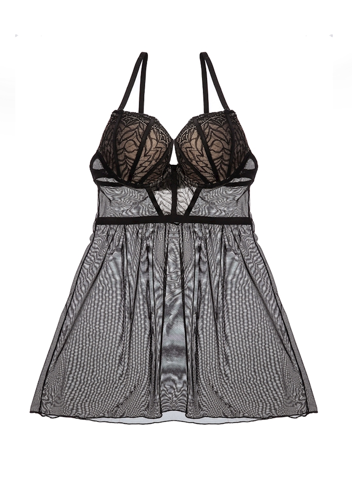 Camisola Chloe con sujetador push up de media copa, diseñada con encaje floral y gasa transparente, que le da un toque sensual.